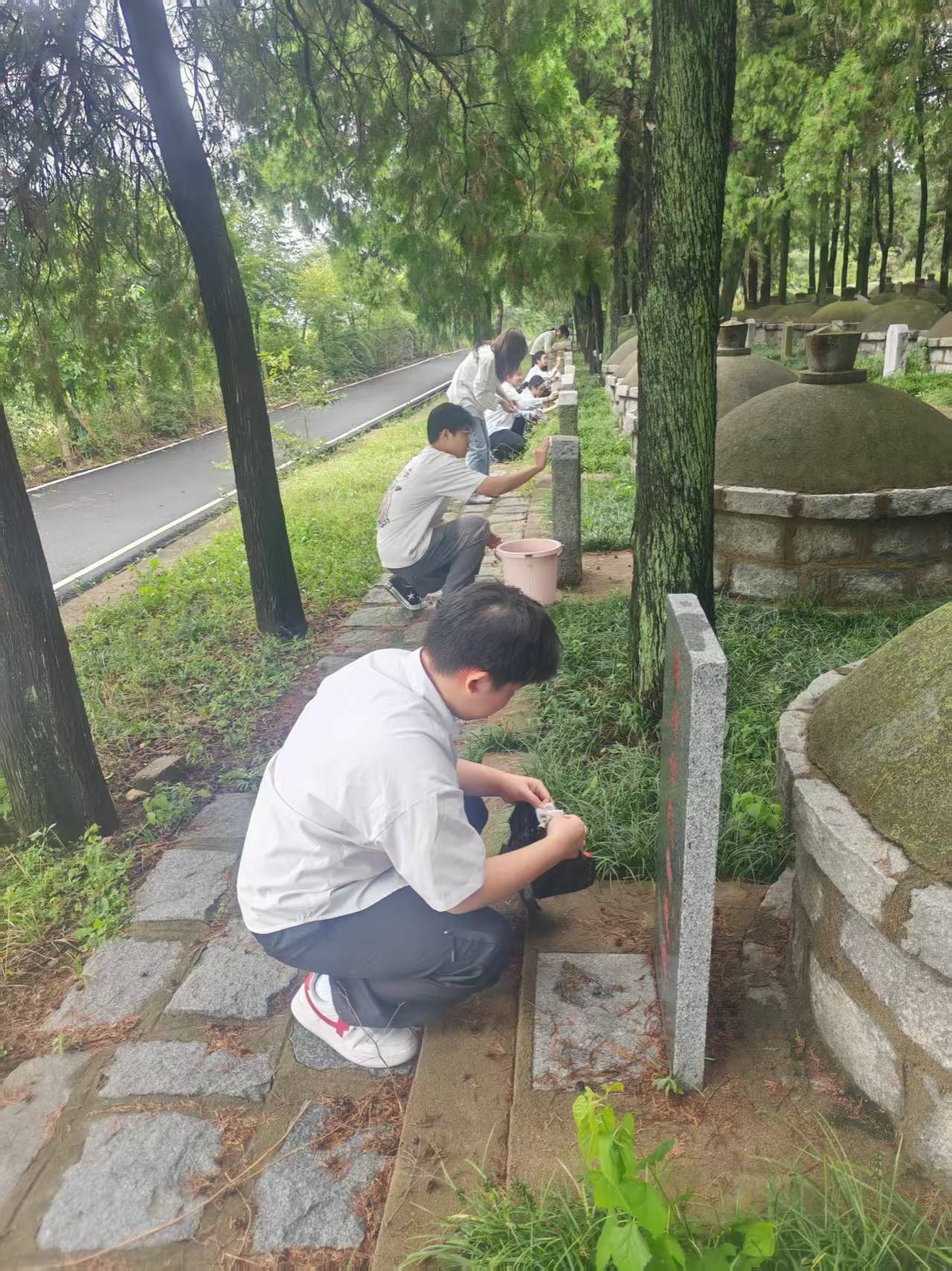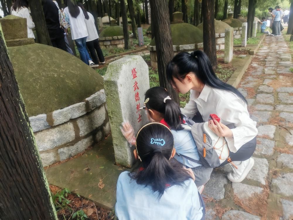 活动最后,老员工们带领小员工手持毛笔,为烈士墓碑一笔一画认真描红,以表达对先烈的缅怀敬意。师生们还纷纷对墓碑和纪念设施进行擦拭清理,清扫杂草、垃圾等,用实际行动擦亮历史的记忆,守护英灵安息之地。