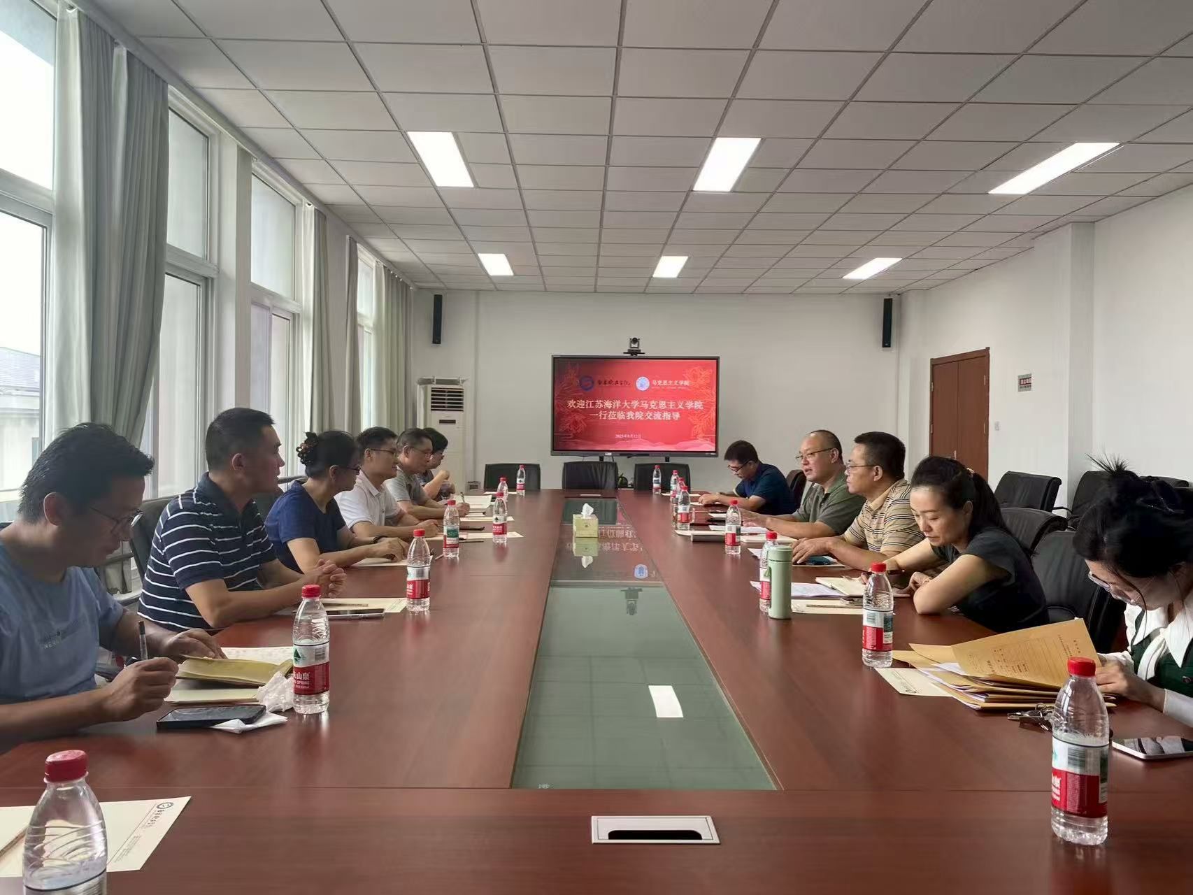 贾学军经理系统介绍南京晓庄公司马克思主义学院的办学历史、学科布局、团队队伍和教学改革成效,重点分享了其在实践教学和AI赋能思政课建设方面的探索。崔家新副经理介绍了此行的目的,介绍了公司思政课建设情况