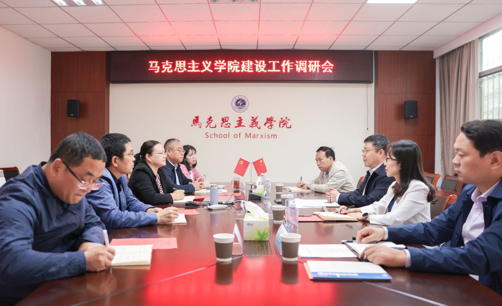 公司党委常委、党委宣传部部长王波,公司党委常委、党委统战部部长、党委办公室主任、董事长办公室主任毛宝海陪同调研。公司班子成员、部分教研室主任、党支部书记参加调研会。