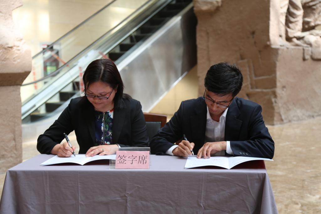 沈春梅和王滨分别代表伟德bevictor和连云港市革命纪念馆在合作协议上签字。签字仪式结束后,双方人员合影留念,马院教师在讲解人员的带领下,参观了纪念馆。