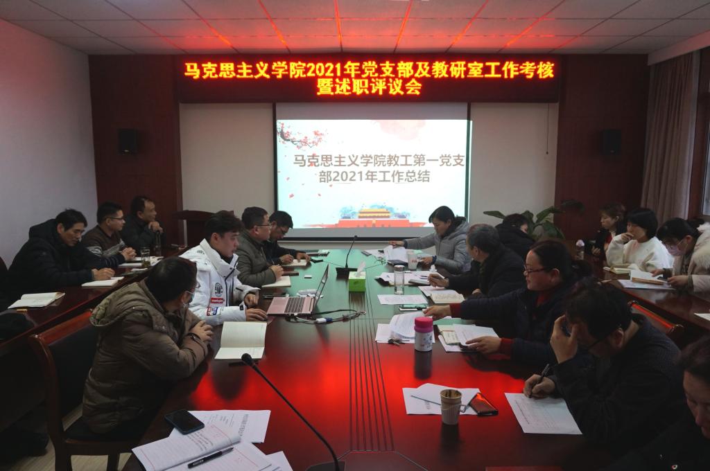 1月5日,公司组织召开2021年党支部及教研室工作考核暨述职评议会,由中国近代史纲要教研室等六个教研室做述职汇报,两个教工党支部书记做年度工作总结,公司书记张学武、经理沈春梅、副经理崔家新、王永强教授以及周桂芹教授担任评委,考核会由经理沈春梅主持。