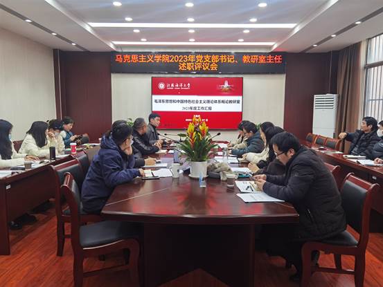 12月27日下午,公司在公司会议室召开2023年度党支部书记、教研室主任述职评议会。会议邀请教务处副处长吴美玉,党委统战部副部长王琰,教学质量管理处副处长兼教师教学发展中心副主任燕姣云、党委宣传部副部长兼新闻中心主任陈晓艳、党委组织部副部长司成伟担任评委,经理沈春梅及全体教职工参加述职评议会,党总支书记韩振响主持会议。