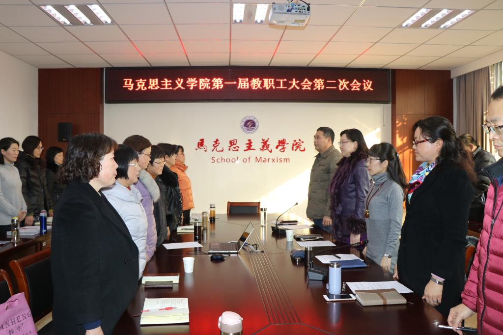 12月26日下午, 公司在公司会议室召开第一届教职工大会第二次会议,淮海工公司工会主席万洁应邀列席会议,公司党总支书记金芙蓉、副经理张学武、分工会主席王永强及公司全体教职工参加了会议,会议由副经理沈春梅主持。