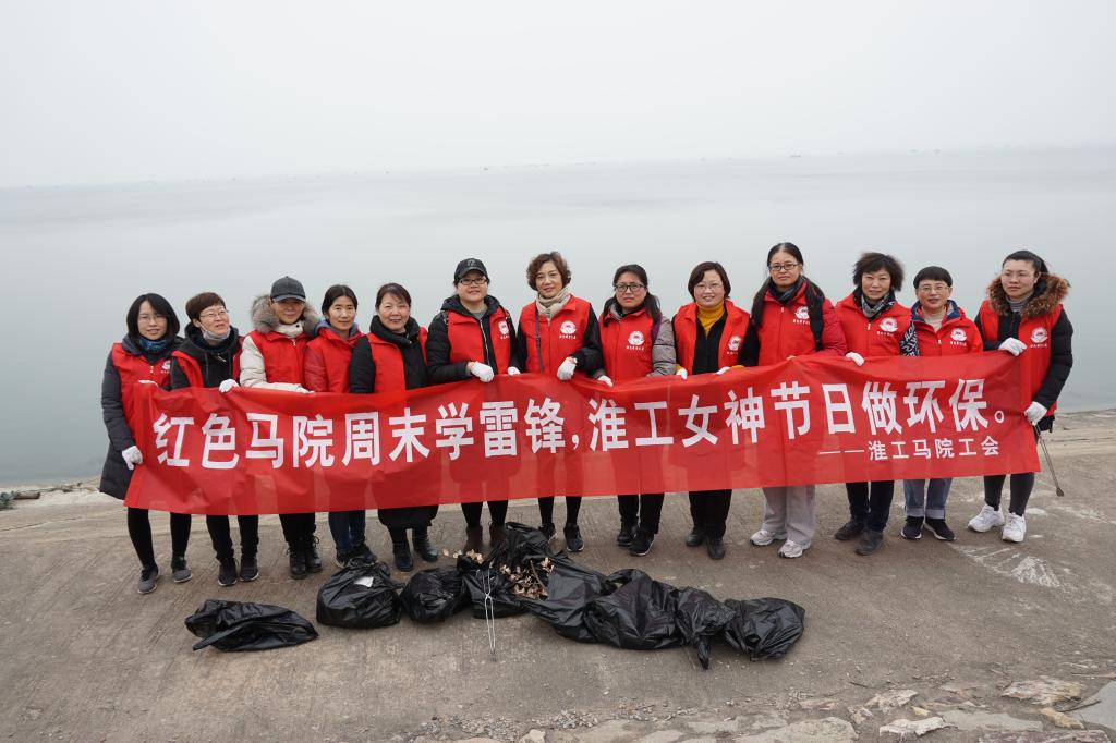 3月9日,为庆祝三八妇女节,我院组织全体女教工赴海陵湖举行“红色马院周末学雷锋,淮工女神节日做环保” 公益环保我先行活动。