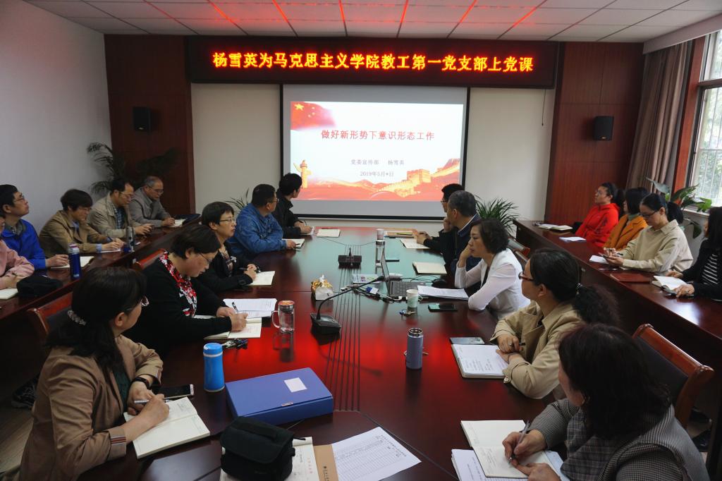 杨雪英以“做好新形势下意识形态工作”为主题,从“意识形态和意识形态博弈”、“正确认识当前我国意识形态领域的总体态势”、“准确把握高校意识形态工作面临的新形势”、“目前高校意识形态领域的主要风险”、“牢牢把握高校意识形态工作领导权”等五个方面,为党员教师们上了一堂精彩的党课。