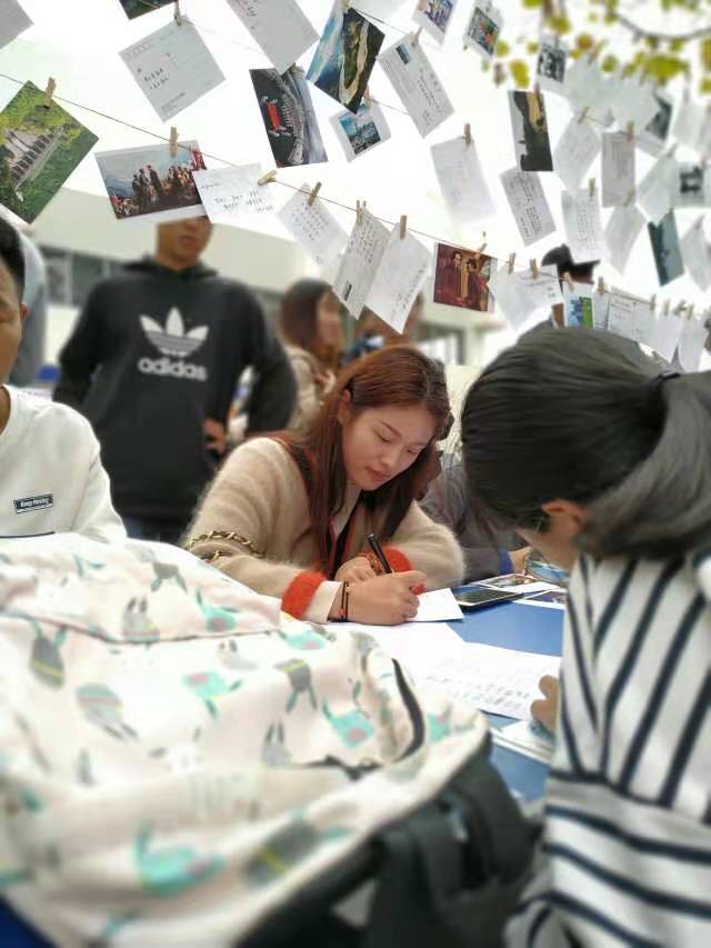 此次活动精选了70余幅珍贵历史照片,以图片、文字相结合的方式介绍了新中国成立70年来我国在经济社会发展方面取得的辉煌成就。峥嵘七十载,新中国从风雨中走来,从举步维艰到大步向前,成就了今日的繁荣昌盛。同学们驻足在照片前,有的感慨新中国成立70年来居民生活的巨大变化;有的感慨70年来我国国防建设取得的辉煌成就;还有的感慨于我国综合国力的提升所带来的国际地位的提高。在场的同学们还纷纷通过明信片的形式抒发自己的民族自豪感和爱国热情。