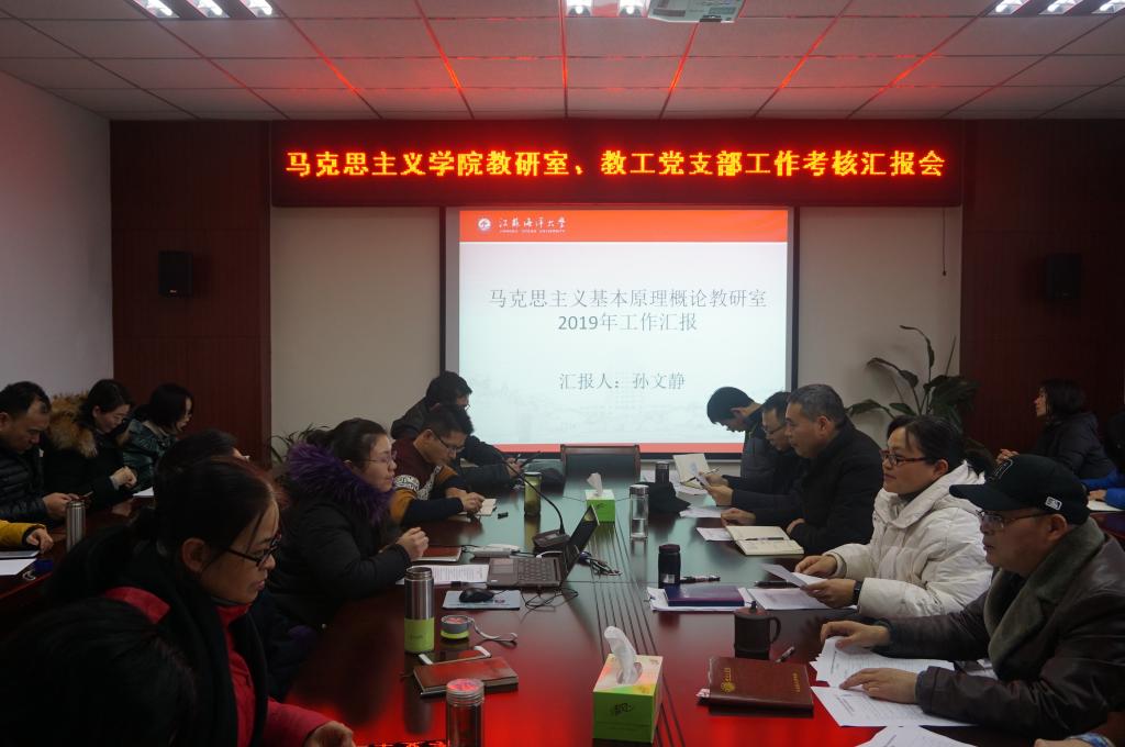 教工第一党支部、教工第二党支部从党支部凝聚力建设、党员活动开展以及党员作用发挥等方面作了介绍;马克思主义基本原理教研室、中国近代史纲要教研室、“形势与政策”课教研室、毛泽东思想与中国特色社会主义理论体系概论、思想道德修养与法律基础教研室从教学工作、教研工作及特色工作三个方面进行了汇报。