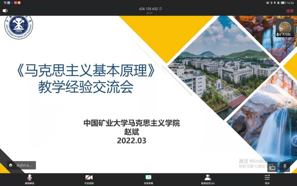 3月23日下午,公司邀请江苏省首届思政课教学展示活动特等奖获得者中国矿业大学伟德bevictor赵斌老师作思政课教学展示。展示活动通过腾讯会议进行,由经理沈春梅主持,公司全体教师参加了活动。