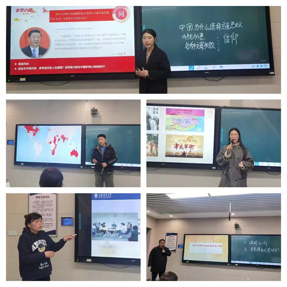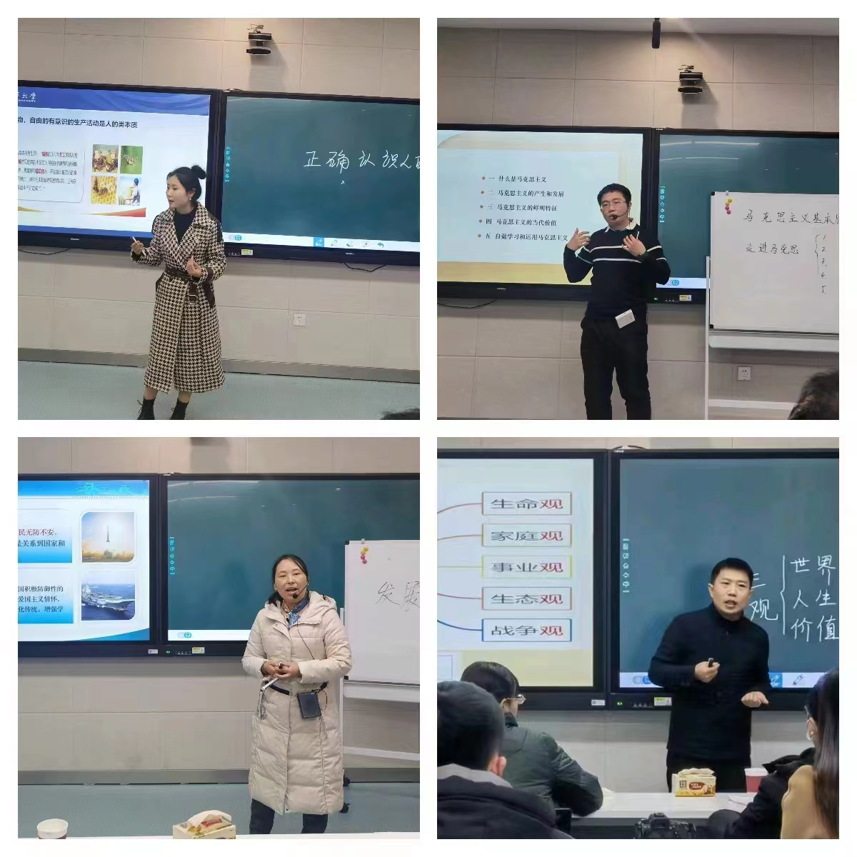 比赛中,参赛教师分别以“社会主义先进文化”“归纳与演绎”“人的本质”“新民主主义革命道路”“马克思主义为什么行”等主题进行了教学展示。他们准备充分、精神饱满、讲解透彻,获得评委及在场教师的一致好评。经过现场激烈角逐并结合教案撰写情况,最终倪念念、王泉月两位老师拔得头筹。