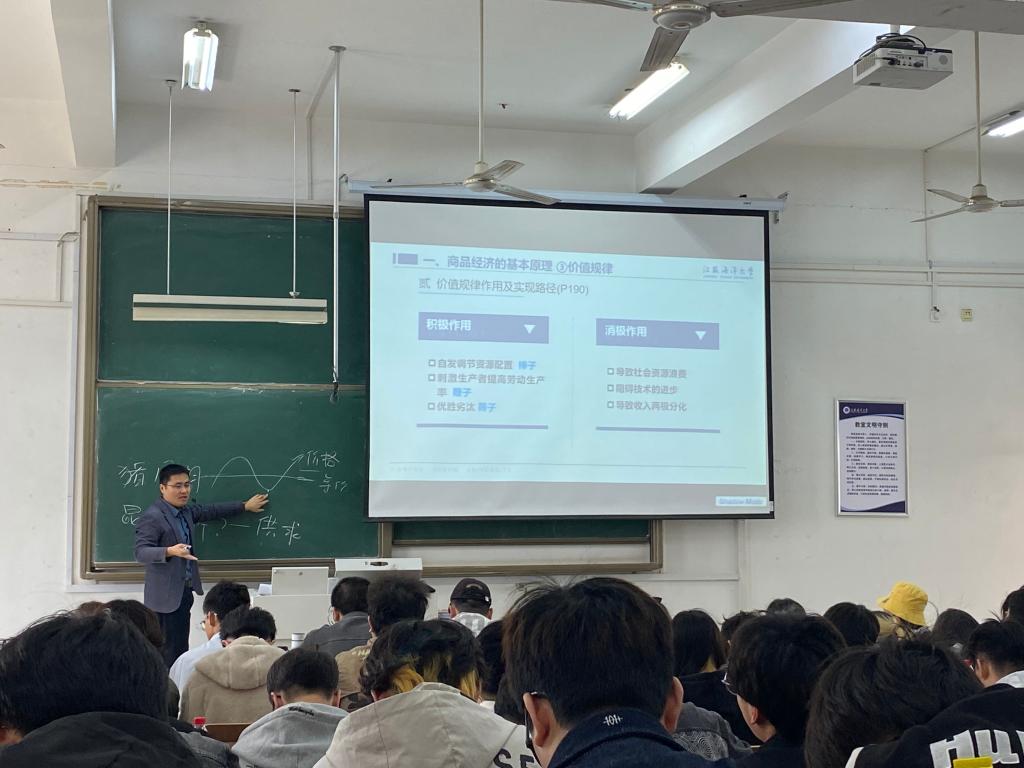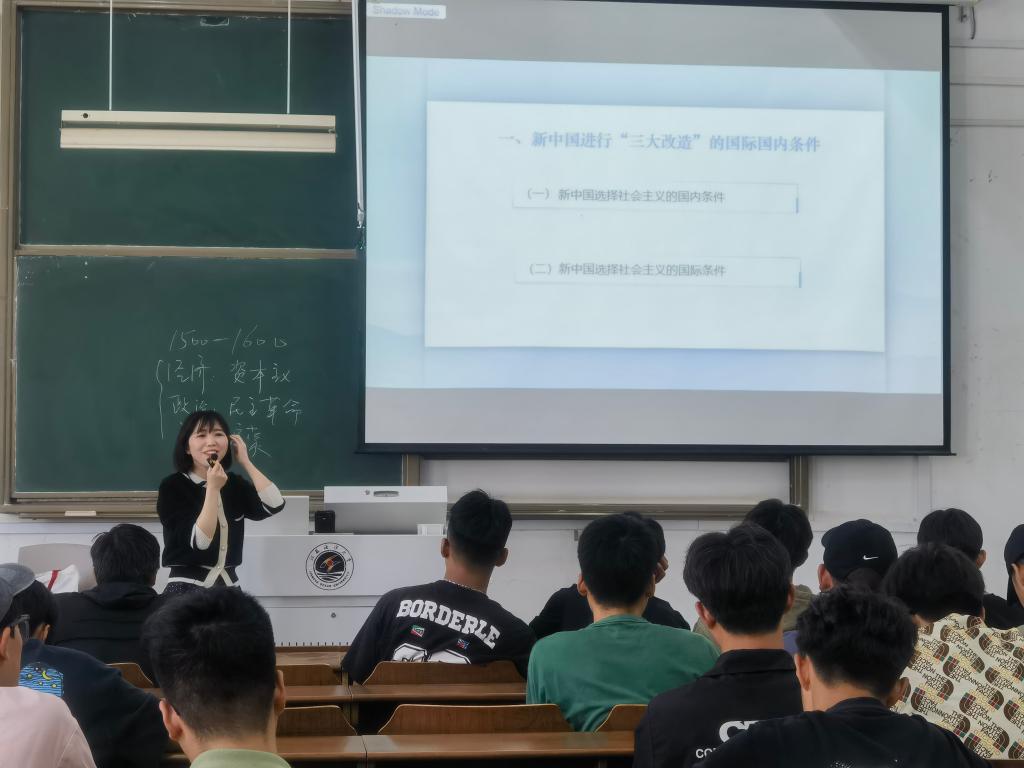 5月8日,在《马克思主义基本原理》的课堂,崔家新老师以“剩余价值的生产”为题,从剩余价值的概念、剩余价值的生产过程、剩余价值生产的两种基本方法等方面对剩余价值生产进行了深入浅出的讲解。5月12日,在《中国近现代史纲要》课堂,倪念念老师以“社会主义三大改造”为题,通过丰富的史料与详实的论证再现了社会主义三大改造的必要性、可能性,并以多媒体视频的方式再现了三大改造的历史过程。5月23日,在《习近平新时代中国特色社会主义思想概论》的课堂,王泉月老师从连云港海洋生态现状以及物种多样性等视角导入“建设社会主义生态文明”课程内容,并结合楼兰古城兴衰等案例讲述尊重自然、顺应自然和保护自然的生态文明理念,在师生有问有答的积极互动中,对习近平生态文明思想进行了深层次的讲解与阐释。