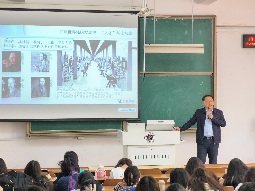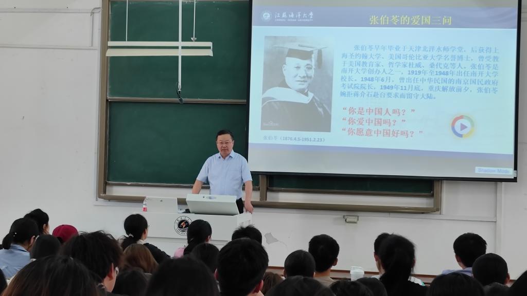 董事长宁晓明走进《思想道德与法治》的课堂,以“爱国”为主题,依托鲜活的案例,强化同学们的爱国意识,领悟新时代“爱国”的深刻内涵,勉励同学们友善待人、团结同学,强化道德修养、树立正确的价值观,做新时代好青年。