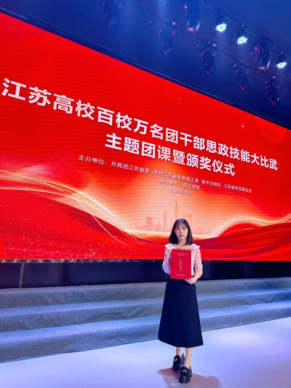 9月25日,由共青团江苏省委、中共江苏省委教育工委、新华日报社、江苏省员工联合会主办的“学思想、跟党走、建新功”江苏高校百校万名团干部思政技能大比武决赛在宿迁公司举行。公司老师荣获特等奖1项,三等奖1项。