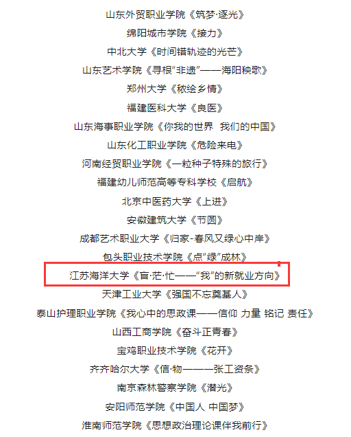 近日,由教育部高校思政课教学指导委员会主办的“新思想引领新征程·新青年建功新时代”——第七届全国高校老员工讲思政课公开课展示活动、“我心中的思政课”第七届全国高校老员工微电影展示活动评选结果相继揭晓,公司报送的微课《 山海不远行大道,千古之路向云端——从“一带一路”看人类命运共同体 》和微电影《 盲·茫·忙——“我”的新就业方向》两组作品脱颖而出,分别荣获全国一等奖、全国三等奖。