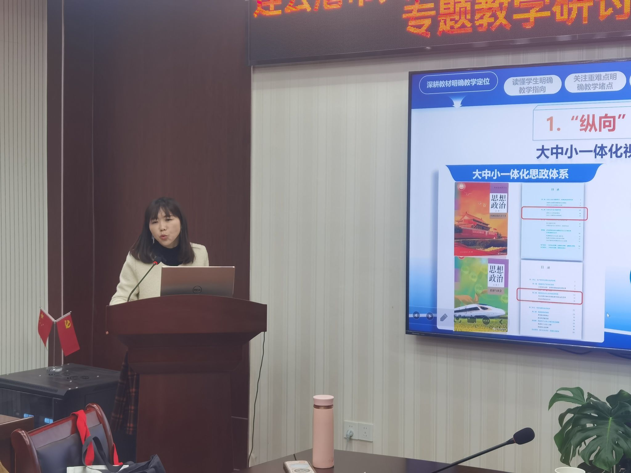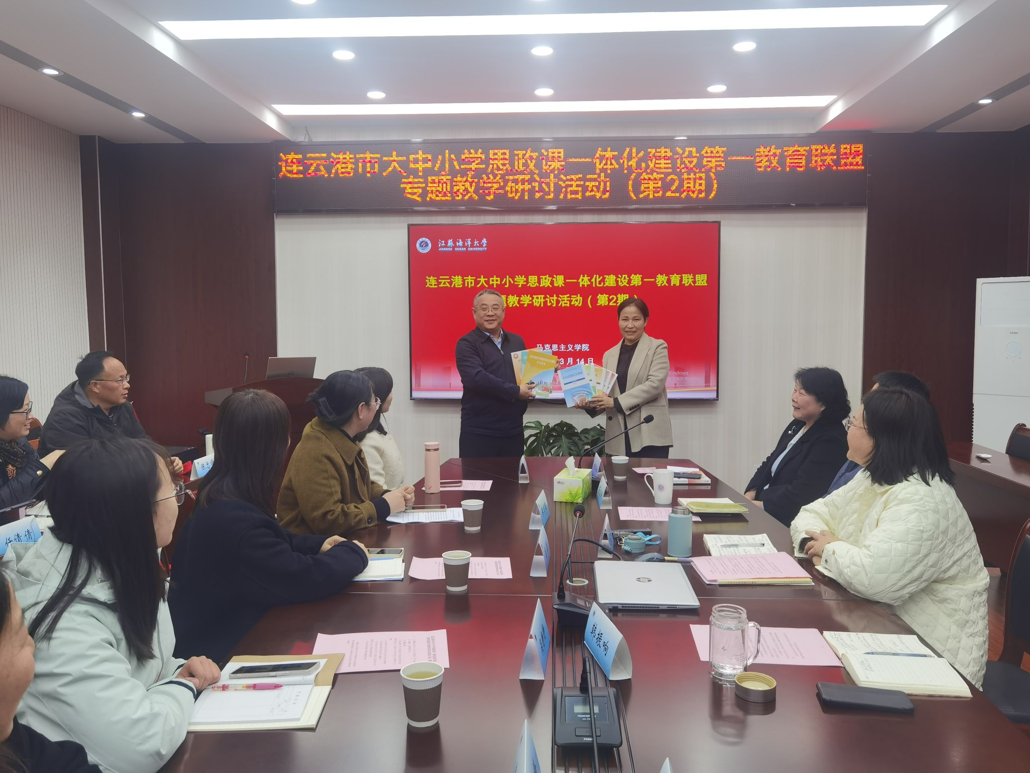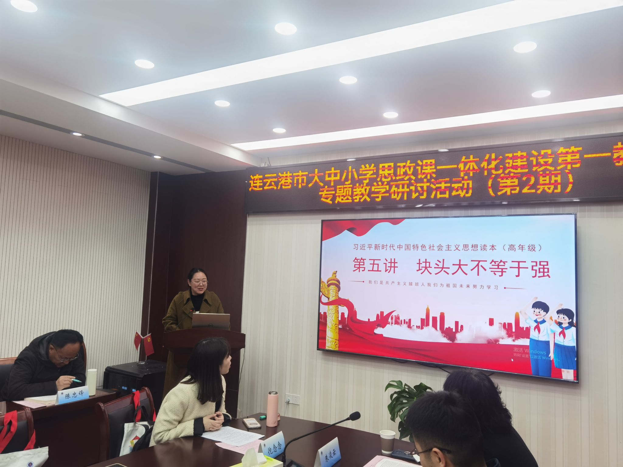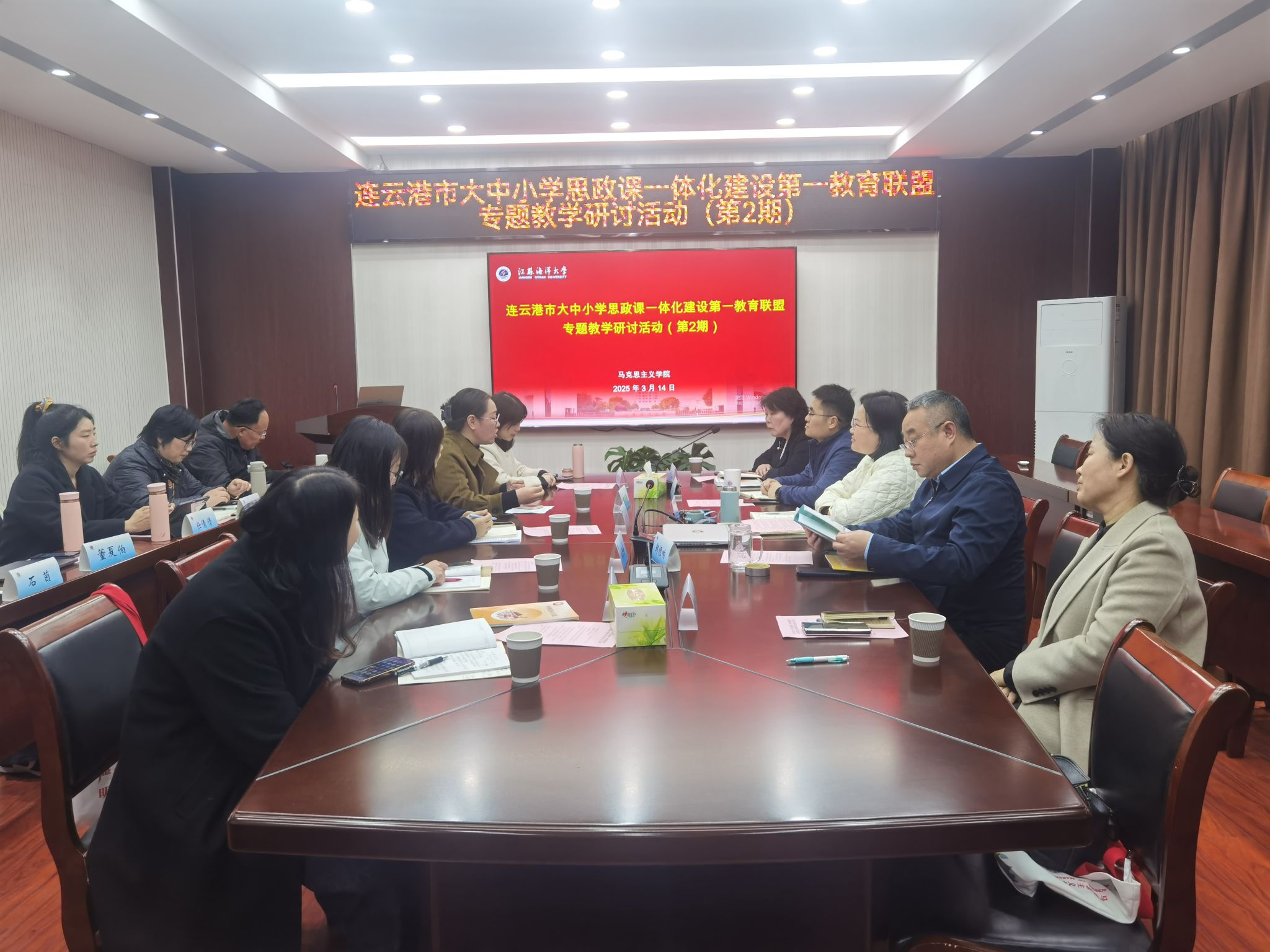 为进一步推动大中小学思政课一体化建设,增进大中小学思政课教师对各学段知识的相互了解,3月14日,第2期连云港市大中小学思政课一体化建设第一教育联盟专题教学研讨活动在公司112会议室举行。公司经理、连云港市大中小学思政课一体化指导委员会专家指导组组长沈春梅,公司党总支书记韩振响,连云港市苍梧小学党委书记戴咏芳,公司副经理崔家新,公司习近平新时代中国特色社会主义思想概论教研室教师,连云港市苍梧小学思政课教师代表参加活动,活动由公司经理沈春梅主持。