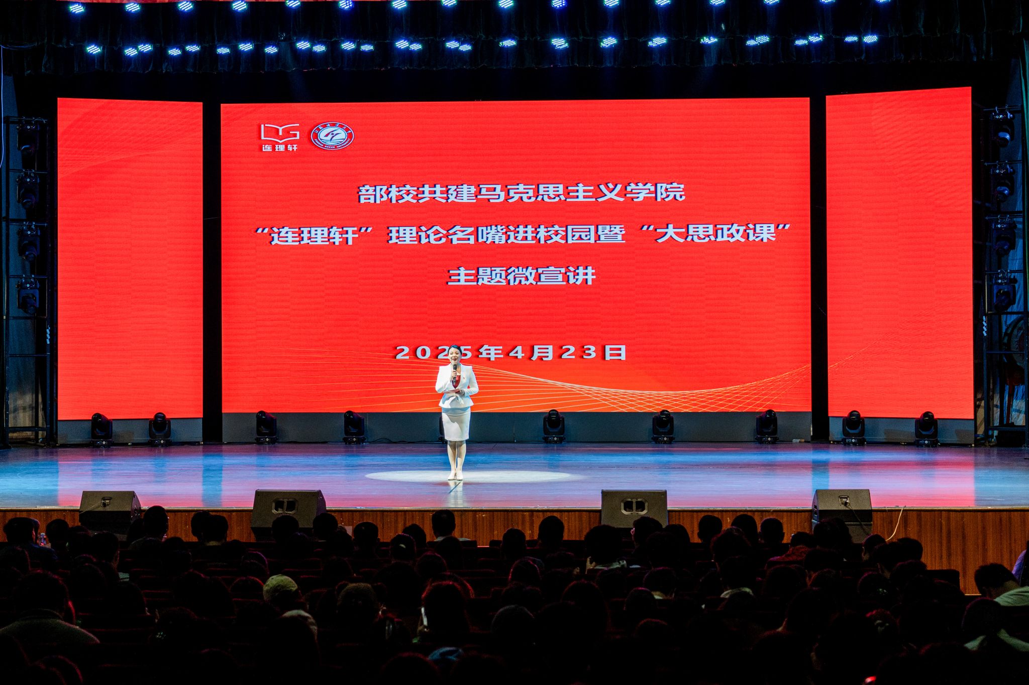 为坚持不懈用习近平新时代中国特色社会主义思想铸魂育人,深入贯彻教育部、中宣部等十部门《全面推进“大思政课”建设的工作方案》,推进连云港市委宣传部、伟德体育共建伟德bevictor,4月23日下午,校地共建伟德bevictor“连理轩”理论名嘴进校园暨“大思政课”主题微宣讲活动在伟德bevictor举行。董事长汤建,连云港市委常委、市委宣传部部长胡竹出席活动并讲话。公司党委常委、副董事长金芙蓉主持活动。
